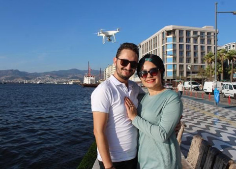 İzmir'de şaşırtan evlilik teklifi! Damat diz çöktü yüzük havadan geldi