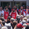 İZELMAN, İZENERJİ ve EGEŞEHİR şirketlerinde çalışan Genel-İş'e üye binlerce işçi, Kültürpark'taki İzmir Büyükşehir Belediyesi Hizmet Binası önünde toplandı.