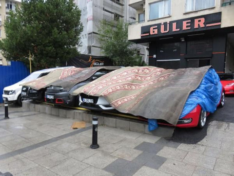Galerinin tamamı için tıklayınızBaşka bir galeri sahibi Mete Güler "Dolu bir anda bastırdı ,önlem almakta geç kaldık. Araçlarımızda zarar meydana geldi " dedi.