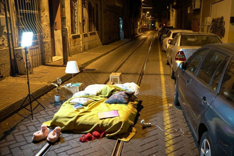 Kadıköy'de şaşırtan görüntü! Yatak odasını sokağa taşıdı