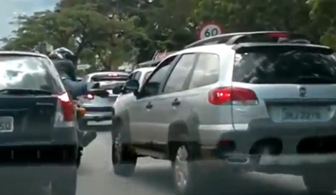 Galerinin tamamı için tıklayınızKırmızı ışıkta kendisine yol açmayan kadın sürücüyle münakaşa eden motorsikletli kadınını aracınını tekmeleyince neye uğradığını şaşırdı.