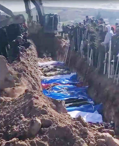 Sokaklar ve hastane bahçelerinin cenazelerle dolup taşması üzerine AFAD kimliği belirlenemeyen cenazelerin, parmak izi alınıp fotoğrafı çekilerek defnedilmesine karar vermişti. Deremin ardından mezarlıklardaki fotoğraf ve görüntüler de yürek burktu.