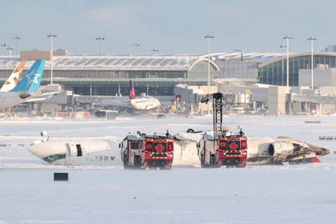 Kanada'da yolcu uçağı iniş sırasında kaza yaptı ters döndü şaşırtan görüntüyer