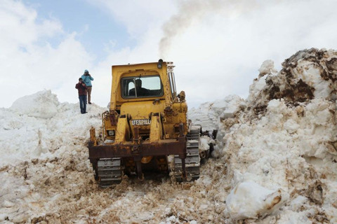 Kar kalınlığı 10 metreye ulaşan yolu açmak için serferber oldular