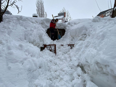Bitlis merkeze bağlı Hüsrevpaşa Mahallesi’nde bulunan tek katlı evler yoğun kar yağışından dolayı adeta kaybolurken, edinilen bilgiye göre, çatılarda biriken karların düşmesiyle bir aile, evinde mahsur kaldı. Sabah evin kapısını açmak isteyen aile, kar manzarasıyla karşı karşıya kalınca durumu hemen 112 Acil Çağrı Merkezine bildirdi. İhbar üzerine harekete geçen Bitlis Belediyesi İtfaiye Müdürlüğü ekipleri, küreklerle evlerinde mahsur kalan aileyi kurtardı.İtfaiye Müdürü Nazmi Olcay, sabah saatlerinde gelen ihbar nedeniyle vakit kaybetmeden olay yerine intikal ettiklerini belirterek, “Tek katlı evin çatısından inen kar kütleleri evi adeta yutmuş durumdaydı. Ekiplerimiz hemen küreklerle karları temizleyip evin içindeki aileyi kurtardı” dedi.Öte yandan Bitlis’te Aralık, Ocak ve Şubat aylarında yağan kar miktarı toplamda 5,5 metre olurken, sadece Mart ayında ise 4 metre 13 santimetre olarak ölçüldü.