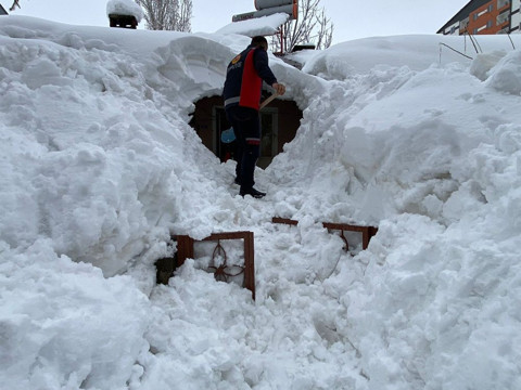 Bitlis merkeze bağlı Hüsrevpaşa Mahallesi’nde bulunan tek katlı evler yoğun kar yağışından dolayı adeta kaybolurken, edinilen bilgiye göre, çatılarda biriken karların düşmesiyle bir aile, evinde mahsur kaldı. Sabah evin kapısını açmak isteyen aile, kar manzarasıyla karşı karşıya kalınca durumu hemen 112 Acil Çağrı Merkezine bildirdi. İhbar üzerine harekete geçen Bitlis Belediyesi İtfaiye Müdürlüğü ekipleri, küreklerle evlerinde mahsur kalan aileyi kurtardı.İtfaiye Müdürü Nazmi Olcay, sabah saatlerinde gelen ihbar nedeniyle vakit kaybetmeden olay yerine intikal ettiklerini belirterek, “Tek katlı evin çatısından inen kar kütleleri evi adeta yutmuş durumdaydı. Ekiplerimiz hemen küreklerle karları temizleyip evin içindeki aileyi kurtardı” dedi.Öte yandan Bitlis’te Aralık, Ocak ve Şubat aylarında yağan kar miktarı toplamda 5,5 metre olurken, sadece Mart ayında ise 4 metre 13 santimetre olarak ölçüldü.