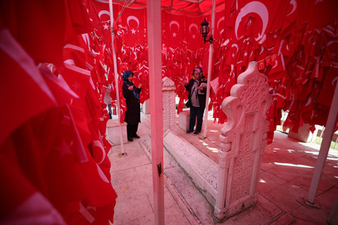 Çanakkale'nin Gelibolu ilçesinde bulunan ve Türkiye'nin dört bir yanından tarihi yarımadayı ziyarete gelenlerin uğrak yerlerinden olan "Bayraklı Baba Türbesi", hem hikayesi hem de dua eden ziyaretçilerin astığı yüzlerce Türk bayrağıyla ilgi görüyor. Tarihi Gelibolu Yarımadası Tarihi Milli Parkı'nı gezen ziyaretçiler, Gelibolu ilçesi Hamzakoy bölgesinde bulunan ''Bayraklı Baba Türbesi''ne uğrayıp dua ediyor. Gelen her ziyaretçinin Türk bayrağı astığı türbe, özellikle hafta sonları Türkiye'nin değişik bölgelerinden çok sayıda ziyaretçiyi ağırlıyor. Türbe, çevresi ve tavanındaki demirlere uç uca eklenerek asılan yüzlerce Türk bayrağıyla, kırmızı-beyaz görüntüsüyle dikkati çekiyor. Gelibolu Belediye Başkanı Mustafa Özacar, Gelibolu Yarımadası'nın geçmişten günümüze birçok tarihi olaya tanıklık ettiğini söyledi. Özacar, bu topraklardaki tüm değerleri gelecek kuşaklara aktarmak için çalıştıklarını dile getirerek, "Bayraklı Baba"nın da bu toprakların bir değeri olduğunu vurguladı. Asıl adı Karacabey olan Bayraklı Baba ile ilgili iki rivayetin olduğunu dile getiren Özacar, şöyle konuştu: "Osmanlı'nın ilk yıllarında orduda bayraktarlık yapan Karacabey, Bizans ile yapılan bir savaşta esir düşeceğini anlaşınca bayrağın düşman eline geçmemesi için 'namus' olarak gördüğü bayrağı küçük parçalara böler ve yutar. Ancak kısa bir süre sonra durum Türk askerlerinin lehine döner ve Karacabey arkadaşları tarafından kurtarılır. Karacabey'e arkadaşları ve komutanları sancağı ne yaptığını sorar. Karacabey, düşmana vermemek için parçalara ayırarak yuttuğunu söyler fakat kimseyi inandıramaz. Karacabey, yalan söylemediğini ispatlamak için midesini parçalar ve karnındaki bayrağın ortaya çıkmasını sağlar. Midesini kesmeden, yani ölmeden önce ise 'Benim yerim burasıdır. Beni buraya gömün ve üzerimi bayraksız bırakmayın.' diye vasiyet ettiğine inanılır." Özacar, diğer rivayette ise Karacabey'in Bizans ile yapılan bir savaşta şehit düşmeden önce "Beni çok sevdiğim Gelibolu'ya gömün ve üzerimi bayraksız bırakmayın." vasiyeti üzerine burasının türbeye dönüştüğünü anlattı. Bayraklı Baba Türbesi'ni ziyaret edenlerin dua ederek Türk bayrağı astığını dile getiren Özacar, şunları kaydetti: "Her ziyaretçi bayrak asınca ortaya böyle yüzlerce Türk bayrağının olduğu bir manzara çıkıyor. Yaşadığımız her karış tarihi değerlerle dolu. Biz istiyoruz ki tüm ülke gelip bu değerleri yerinde görsün. Bu ülke kolay kurulmadı. Genellikle Çanakkale Savaşları'nın yaşandığı alanları ziyaret edenler, Bayraklı Baba Türbesi'ne uğramadan geçmiyor. Tüm vatandaşlarımızı Gelibolu'ya bu yerleri görmeye davet ediyoruz. Gördüklerinden çok etkileneceklerdir." Tekirdağ'ın Çorlu ilçesinden gelen ziyaretçilerden Cengiz Doğru, Bayraklı Baba'nın etkileyici bir hikayesinin olduğunu anlatarak, "Burasının Anadolu'nun dört bir yanından ziyaretçisinin olduğunu biliyorum. Ben de buraya gelip dua ettim. Bir dilek tutarak Türk bayrağını astım." dedi. Gelibolu'da yaşayan Nur Tenkiye de türbeye özellikle hafta sonları binlerce ziyaretçinin geldiğini ifade ederek, "Bayraklı baba savaş zamanında bayrağı düşmana vermemek için yutarak şehit olmuş. Bundan dolayı gelen ziyaretçiler dua edip bir bayrak asıyor." diye konuştu.