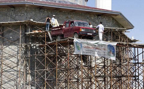 Trabzon'un Çaykara ilçesinde şaşkına çeviren görüntü... Yaylada yaptırılan cami inşaatına taş taşımakta güçlük çeken ustalar, yerden caminin kubbesine doğru köprü yaptı. Cami ustaları yol yapıldıktan sonra kamyonetle yaklaşık 200 ton taşı, yukarı kısma taşıyarak duvarın yapımında kullandı. Böylelikle ustalar, cami yapımında yaklaşık 2 ay gibi bir zamanı da kazanmış oldu. Sultan Murat Şehitler Camisi ve Külliyesi İnşaatı Yürütme Kurulu Başkanı Enver Yıldırım, kamyonetin bir kez devrilme tehlikesi atlattığını belirterek, "Araç köprüden her geçtiğinde 'acaba kaza olur mu, kaza olduğunda bunun cevabını nasıl veririz' diye hep düşündüm. Taş taşıma süresince bu sorular hep aklımdaydı ama Karadeniz insanının zekası ve cesaretiyle bu işin üstesinden güzel bir şekilde geldik" diye konuştu.