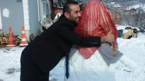 Sakarya'nın Kaynarca ilçesinde yaşayan bekar gencin, bahçesine yaptığı kardan gelinle çektirdiği fotoğraf güldürdü. Kaynarca Büyükyanık Mahallesi’nde oturan Hidayet Eryiğit, sosyal medyada paylaştığı fotoğraflarla ilgi çekti İnşaat işleriyle uğraşan ve bekar olan 26 yaşındaki Hidayet Eryiğit evinin bahçesinde kardan gelin yaptı. YOKLUĞUN GÖZÜ KÖR OLSUN" Takım elbiselerini giyip, kardan geline sarılarak pozlar veren Hidayet Eryiğit, “Yokluğun gözü kör olsun” yazarak fotoğrafları paylaştı. Espri olması amacıyla kardan yaptığı gelin ile poz veren Hidayet Eryiğit arkadaşlarını gülümsetti. İŞTE EN KOMİK KARDAN ADAMLAR...