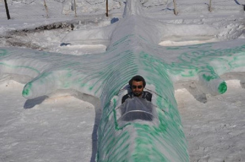 Galerinin tamamı için tıklayınızHAKKARİ'nin Yüksekova İlçesi'nde, Mehmet Şerif Karahan evinin önünde biriken karlardan savaş uçağı yaptı.