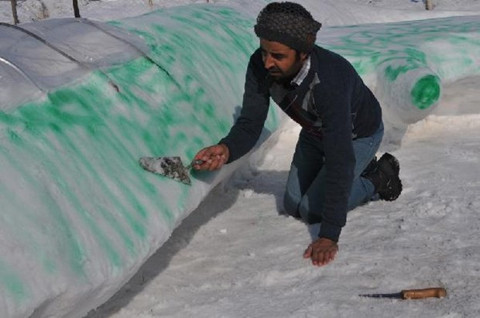 Galerinin tamamı için tıklayınızKarahan, daha önce de kardan ev, helikopter yaparak mahallelinin ilgi odağı olduğunu, bu tür çalışmaların kendisini mutlu ettiğini söyledi.