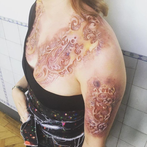 Kim Kardashian'ın giydiği garip kıyafetlere, öncüsü olduğu modaya alışığız ama bu gerçekten çok tuhaf. Kim Kardashian'ın kalp atışları ile yanıp sönen ve cilt altına implant edilmiş gibi görünen kolyesi herkesi şaşırttı. Benzer çalışmaların Tan France ve Chrissy Teigen ve Andreja Pejic gibi modeller üzerinde görünce bu çalışmalarım implant değil ustaca yapılmış makyaj olduğunu gördük. Bu ilginç implant takıların Simon Huck tarafından tasarlanan ve 5 Eylülde gerçekleşecek özel bir defile öncesi paylaşımlar olduğu ortaya çıktı. Koreli genç kızların yaptığı plastik makyajlardan sonra doğrusu bu çılgınlıkların moda olması işten değil.