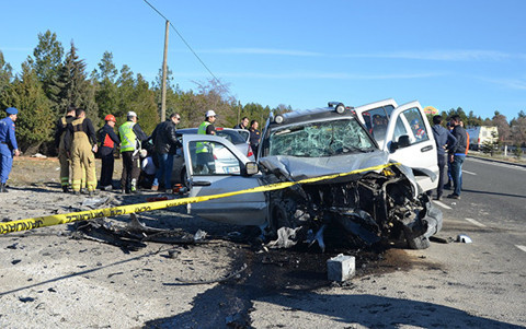 Galerinin tamamı için tıklayınızSağlık ekiplerinin yaptığı kontrolde otomobil sürücüsü Fahrettin Hacıoğlu ile yanındaki eşi Safiye Hacıoğlu (61) olay yerinde yaşamını yitirdiği belirlenirken, oğlu Mesut Hacıoğlu ile cipin sürücüsü Ali Yılmaz ise ağır yaralandı.