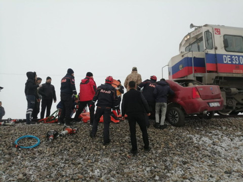 Kars'ta yük treni hemzemin geçitte otomobile çarptı 3 kişi öldü