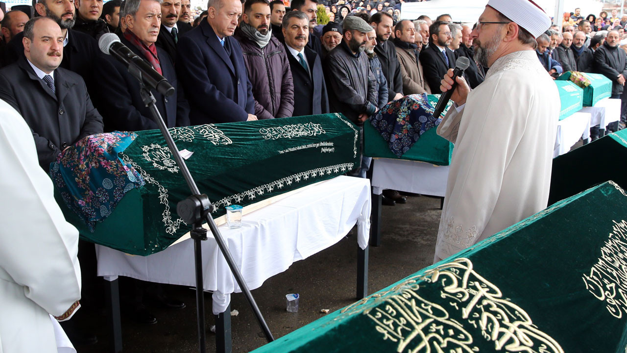 Kartal'da çöken binada hayatını kaybeden Saime, Gökay, Eslem, Mustafa, Ecrin Naz, Safiye, Erdoğan, Ayşe ve Safiye Alemdar için Pendik 15 Temmuz Şehitler Camii'nde öğle namazının ardından cenaze töreni düzenlendi. Yoğun katılımın olduğu cenaze töreninde duygusal anlar yaşandı. Cenaze törenine Cumhurbaşkanı Recep Tayyip Erdoğan, İçişleri Bakanı Süleyman Soylu, Milli Savunma Bakanı Hulusi Akar, Çevre ve Şehircilik Bakanı Murat Kurum, Sanayi ve Teknoloji Bakanı Mustafa Varank, Hazine ve Maliye Bakanı Berat Albayrak, Sağlık Bakanı Fahrettin Koca, İstanbul Valisi Ali Yerlikaya, CHP İstanbul Büyükşehir Belediye Başkan Adayı Ekrem İmamoğlu ve çok sayıda vatandaş katıldı. Diyanet İşleri Başkanı Prof. Dr. Ali Erbaş tarafından kıldırılan cenaze namazının ardından hayatını kaybedenler için dualar edildi ve helallik alındı. ''RABBİM CENNETİYLE BULUŞTURSUN'': Cenazeye Cumhurbaşkanı Recep Tayyip Erdoğan da katıldı. Erdoğan cenazede yaptığı konuşmasında şunları söyledi: "Rabbim cennetiyle buluştursun. Geride kalan yakınlarını da cennetiyle buluştursun. Buradan çıkartmamamız gereken dersler var bizim de buradan nasibimizi almamız lazım, adımlarımızı buna göre atmamız lazım. Az önce Diyanet İşleri Başkanımız sizlerden zaten helallikleri aldı. Rabbim yar ve yardımcımız olsun." Törenin ardından Cumhurbaşkanı Erdoğan, bakanlar ve cenazeye katılanlar tabutları omuzlayarak cenaze arabasına taşıdı. Cenazeler toprağa verilmek üzere Pendik Yeni Şeyhli Mezarlığı'na götürüldü. İşte cenaze töreninden kareler...