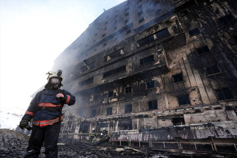Galerinin tamamı için tıklayınız12 katlı otelin çatısında yangın nedeniyle büyük hasar oluştuğu, camların kırıldığı ve eşyaların tamamen yandığı görüldü.