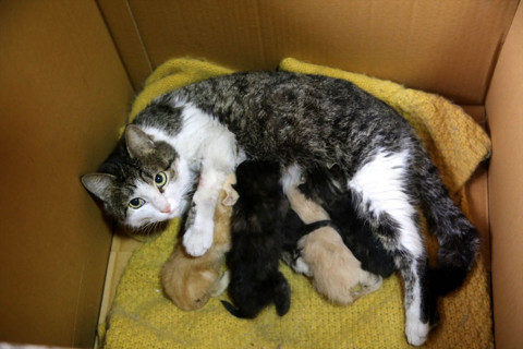 Kastamonu'da yavruları ölen kedi annelerini kaybeden yavrulara kucak açtı