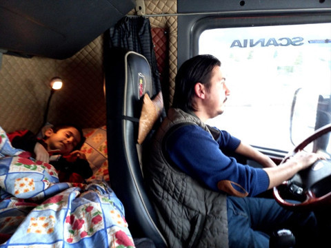 Galerinin tamamı için tıklayınızEşiyle yıllardır şehirler arasında yük taşımacılığı yapan Yıldırım, 9 yaşındaki oğulları Arda Görkem dünyaya geldikten sonra sık sık onu da yanlarında götürmeye başladı. Kedilerini de yanlarına alan ailenin hayatının büyük bölümü, "Ömrüm" adını verdikleri ve evleri olarak gördükleri tırda geçiyor.