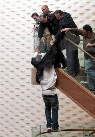 bileklerini kestikten sonra koridordaki korkulukların arkasına