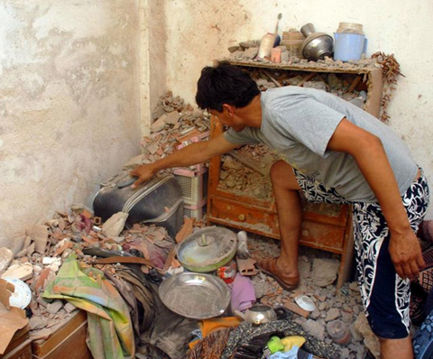 Kaya deprem anında evin üstüne düştü