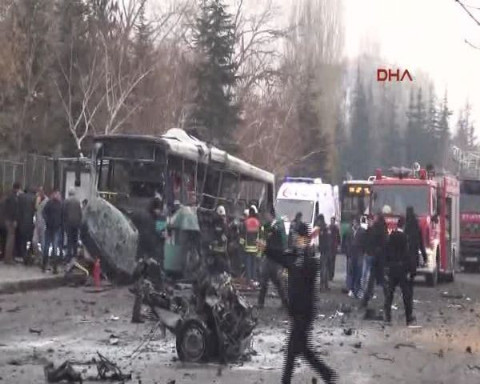 KAYSERİ Erciyes Üniversitesi önünde son dakika gelişmesi yaşanıyor. Gelen ilk bilgilere göre bombalı araçla saldırı gerçekleşti. Kayseri'de Erciyes Üniversitesi kampüsünde bugün saat 08.45'de bir halk otobüsünde patlama meydana geldi. Patlamada yaralıların bulunduğu bildirilirken, olay yerine ambulanslar sevkedildi. TSK'dan yapılan son dakika açıklama göre 13 asker şehit oldu 48 asker de yaralandı. SÜLEYMAN SOYLU AÇIKLAMA YAPTI Süleyman Soylu yaptığı açıklamada 56 kişinin yaralandığını 6'sının durumunun ağır olduğunu duyurdu. PATLAMANIN OLDUĞU NOKTA Patlamanın, otobüsün çarşı iznine çıkan askerleri aldığı sırada gerçekleştiği kesinleşti