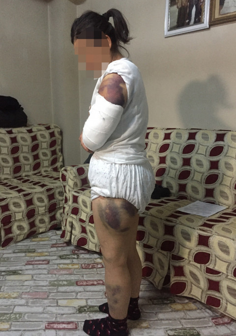 Olay, merkez Sarıçam ilçesi Orhan Gazi Mahallesi'nde meydana geldi. İddiaya göre, S.Ç. (35) 2006 yılında bir tekstil fabrikasında çalışan H.Ç. (35) ile evlendi. Bu evlilikten çiftin 3 çocuğu oldu. Ancak S.Ç. evlendikten sonra çeşitli nedenlerden dolay her gün dayak yemeye başladı. Çocukları olduğu için ve tehdit edildiği için genç kadın kocasından sürekli dayak yemesine rağmen şikayetçi olmadı. BABASIYLA KONUŞTUĞUNA İNANMADI: Geçtiğimiz Cumartesi akşamı ise H.Ç. işten geldikten sonra genç kadının telefonda konuştuğunu gördü. Genç kadın eşini görünce telefonu kapattı. H.Ç. kimle konuştuğunu sorunca S.Ç., babasıyla konuştuğunu söyledi. Ancak koca bu duruma inanmayarak eşiyle tartışmaya başladı. Bu sırada 3 çocuk ise evdeydi. Tartışma kısa sürede kocanın şiddetine döndü. Koca çocuklarını başka bir odaya götürdükten sonra inşaat demiriyle S.Ç.'yi dövmeye başladı. KOCASINDAN KAÇIP KOMŞUSUNA SIĞINDI: S.Ç. kocasına yalvardı ama o hiç durmadan yaklaşık 30 dakika eşinin kol ve bacak kısımlarına demirle vurarak darp etti. H.Ç. eşinin saçlarından tutup yerlerde sürükledi. Kadın yaklaşık 30 dakika sonra kocasının elinden kurtulup sokağa kaçarak bir komşusuna sığındı. Kocası da peşinden gelip şikayetçi olması halinde öldüreceğini söyledi. Genç kadın komşularınca hastaneye götürülürken hastanede de ölüm korkusundan dolayı her yeri morluk içinde olmasına rağmen merdivenden düştüğünü söyledi. SOL KOLU ÇATLADI: Genç kadının sol kolu yediği dayaktan dolayı çatlak olduğu gerekçesiyle alçıya alındı. Vücudunun her tarafı morluklar içindeki kızlarını gören ailesi ise hastane polisine başvurdu. Polis ekipleri şikayet üzerine kocayı aramaya başlarken, bir taraftan da uzaklaştırma kararı alındı. ''KENDİSİNİ ALDATTIĞIMI DÜŞÜNDÜ'': Daha sonra babasının evine giden genç kadın yaşadığı dehşet dolu anları korku dolu gözlerle anlattı. S.Ç, "Ben babamla konuşuyordum. O sırada eve geldi bana kimle konuştuğumu sordu ben de babamla dedim inanmadı. Kendisini aldattığımı düşünerek çocukları diğer odaya koyup beni öldüresiye dövdü. İnşaat demiriyle yarım saat dövdü. Beni daha öncede dövüyordu ama bu en şiddetlisi oldu. Ben komşuma sığınıp kurtuldum.'' dedi. ''ÖLÜMLE TEHDİT EDİLDİM'': ''Hastanede ilk gün ölümle tehdit edildiğim için kocamın dövdüğünü söyleyemeyip merdivenden düştüğümü söyledim.'' diyen kadın, ''Ama sonra ailem görünce gerçeği hastane polisine söyledim. Beni kocam öldüresiye dövdü. Ben ondan şikayetçiyim onun en ağır ceza almasını istiyorum. Eşimden ayrılacağım. Onu Allah'a havale ediyorum" diye konuştu.