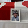 örtülen Sachihiro Omura'nın tabutunun yanı başına konulan hatıra