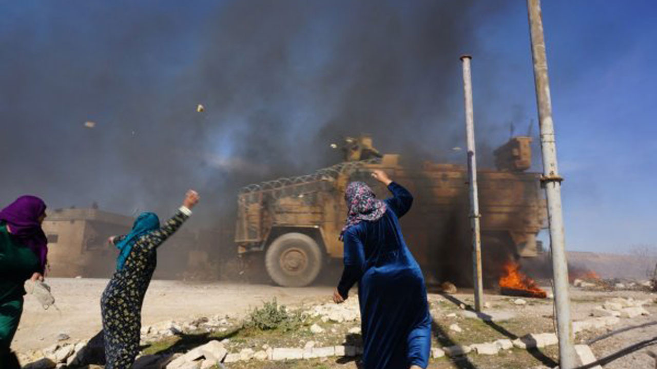 Suriye'deki terör örgütlerinin konuşlandığı bölgeleri temizleyen Türk askeri bölgeyi korumaya çalışırken, Kobani'de yapılan devriye sırasında yine bilindik görüntüler yaşandı. Mehmetçik, YPG yandaşları tarafından saldırıya uğradı.Askerlerimize taşlı saldırıDevriyeler sırasında bölgede bulunan YPG yandaşları, geçiş yapan askeri araçları taşladı.Ellerine aldıkları taşlarla askerlerin bölgeden geçmesini bekleyen terör yandaşları, askeri araçların önünde ateş yaktı.VİDEO İÇİN TIKLAYIN...