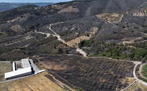 Kocaeli'nin Karamürsel ilçesinde havadan ve karadan müdahale edilen yangında zarar gören ormanlık alan havadan görüntülendi.