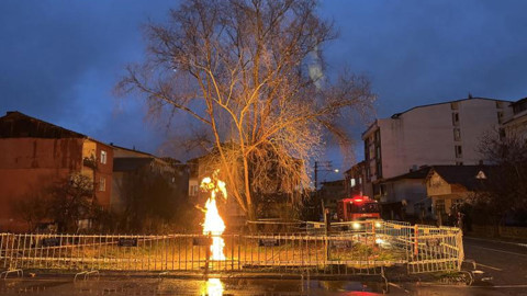 Yerin 46 metre derinliğinden yüzeye çıkan gaz alev aldı.