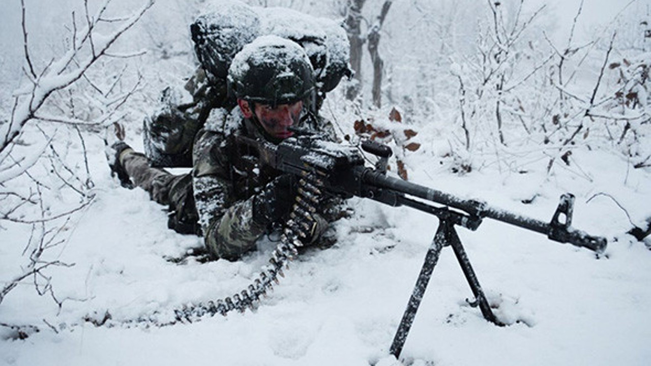 Terörle mücadele ağır kış şartlarında da engel tanımıyor. Şırnak'ta komandolar, sıfırın altına düşen sıcaklıkta operasyonlarını aralıksız sürdürüyor. Bin 750 rakımlı bölgede adım atılmadık yer bırakmıyorlar. 6'ncı Komando Tugayı komutasında bulunan Şırnak'taki Görmeç Üs Bölgesi'nde görevli komandolar; Cudi, Gabar, Namaz ve Yassı (Ciraf) dağları blokunda başta PKK olmak üzere terör örgütleriyle mücadele operasyonlarını ağır kış şartlarında da aralıksız sürdürüyor. Şırnak'ta çevresi karla kaplı ve sisli Cudi, Gabar, Namaz ile Yassı (Ciraf) dağları arasındaki 1750 rakımlı Nohutkapısı Tepe'de, komandoların eksi 5 derecede yürüttüğü terörle mücadele operasyonu, Demirören Haber Ajansı (DHA) ekibince görüntülendi. Karla kaplı olan ve yağışın da etkisini sürdürdüğü üs bölgesinde, komutanlarından operasyon talimatını alan komandolar, tamamen yerli silah ve teçhizatını kuşandıktan sonra yan yana diziliyor. 'Korku nedir, bilmeyiz' diye başlayan Komando Andı'nı hep birlikte söyleyen komandolar, seslerini dağlarda yankılatıyor. Karlı ve sisli havada ant içen komandolar, ardından zırhlı araçlara biniyor. Komandoların ağır kış şartlarında kullandıkları silah ve teçhizatın tamamı, yerli üretimden oluşuyor. Mehmetçik, karla kaplı dağlarda, tamamı yerli imkanlarla üretilen Milli Piyade Tüfeği (MPT), Keskin Nişancı Tüfeği (KNT-76) ve Shutkan Av Tüfeği ile soğuk iklim üniforması ve su geçirmez soğuk iklim botu kullanıyor. Komandolar, operasyonlarda kullandıkları MPT-55, MPT-55K, MPT-76, KNT-76 ve Shutkan av tüfeğiyle teröristlere ağır kış şartlarında darbe vuruyor. Üs bölgesinden araçla ayrılan komandolar, zırhlı aracın ilerleyebileceği son noktaya kadar geldikten sonra inip, önce çevre güvenliği alıyor. Zırhlı araç, üzerindeki FNMAC makineli tüfekle teröristlerin muhtemel geçiş ve temasına karşı önlem atışıyla bölgeden uzaklaştırılırken, komandolar da hilal şeklinde dizilip, kol komutanlarından operasyona ilişkin talimatları alıyor. Mayın arama köpeği 'Kral'ı da kullanan 18 kişilik komando kolu, ikiye bölünüp, karla kaplı tepede arazi arama ve taraması yapıyor. Karla kaplı dağların zirvelerine kadar karış karış ayak basan komandolar, ağır kış şartlarına rağmen düzenledikleri operasyonlarla teröristlerin izini sürüyor. Yüksek rakımlı dağlarda komandolar, bugüne kadar teröristlerin sığınak olarak kullandığı çok sayıda mağarayı tespit edip, içindeki silah, mühimmat ve yaşam malzemelerini imha etti. Çoğu operasyonda geceyi dağda kar üstünde geçiren komandolar, operasyon dönüşü üs bölgesindeki komutanlarına vukuat tekmili veriyor. Komutanların 'Allah yar ve yardımcınız olsun' duasıyla operasyona gönderdiği komandolar, bu kez 'Komandolar hepinizin gözlerinden öpüyorum. Hoş geldiniz' sözleriyle karşılanıyor.