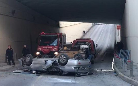 Kontrolden çıkan otomobil üst geçitten böyle uçtu!