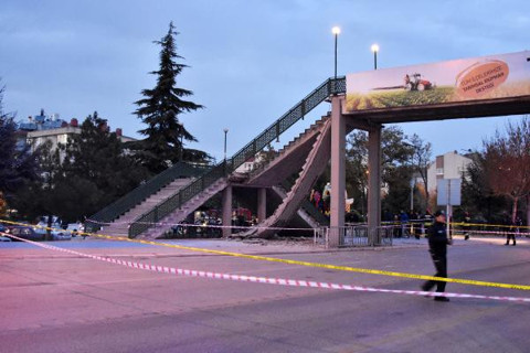 Galerinin tamamı için tıklayınızKonya merkez Selçuklu ilçesi Beyşehir Çevreyolu Caddesi okullar bölgesindeki yaya üst geçidinde saat 17.30 sıralarında meydana gelen olayda; üzerinde yayalar yürüdüğü sırada üst geçidin ayaklarından bir tanesindeki merdivenlerde henüz belirlenemeyen nedenle çökme meydana geldi.