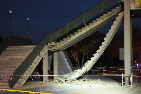 Galerinin tamamı için tıklayınızGöçen merdivenin altında inceleme yapan iftaiye ekibi, enkaz altında kimsenin olmadığını tespit etti. Merdivenlerin olaydan kısa bir süre önce çevrede bulunan okullardaki öğrencilerin geçtiği sırada çökmemesi ise olası bir faciayı önledi.