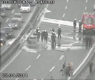 Avrupa Yakası'ndan Anadolu Yakası'na geçişte Boğaziçi Köprüsü bitiminde seyir halindeyken bir araç yanmaya başladı. Yangın söndürüldü, aracı çekme çalışması yapılıyor. Yol kontrollü olarak trafiğe açıldı. Yangını ve söndürme çalışmalarını izlemek isteyen sürücüler nedeniyle Anadolu'dan Avrupa'ya geliş güzergahı Çamlıca'ya kadar uzadı.