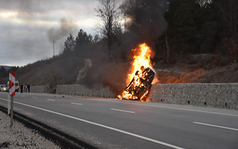 Galerinin tamamı için tıklayınızÇarpmanın etkisiyle alev alan araçtaki sürücü ile kimlikleri henüz belirlenemeyen 4 kişi olay yerinde yanarak, yaşamını yitirdi. Cesetlerin Cumhuriyet Savcısı'nın incelemesinin ardından araçtan çıkarılacağı öğrenildi.