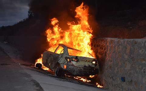 Galerinin tamamı için tıklayınızÇarpmanın etkisiyle alev alan araçtaki sürücü ile kimlikleri henüz belirlenemeyen 4 kişi olay yerinde yanarak, yaşamını yitirdi. Cesetlerin Cumhuriyet Savcısı'nın incelemesinin ardından araçtan çıkarılacağı öğrenildi.