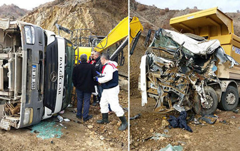 Korkunç kaza: Kamyon diğer kamyonun üzerine düştü!