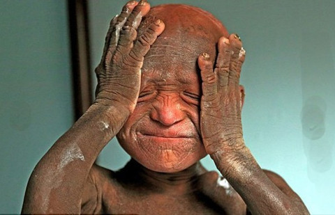 Galerinin tamamı için tıklayınızNar Kumari yeni doğmuş oğlunu ilk kez kucağına aldığında diğer bebeklerden hiçbir farkı yoktu. Anne Kumari hastaneden eve geldikten 15 gün sonra, oğlu Ramesh'in cildi soyulmaya ve yerine kalın siyah bir deri tabakası oluşmaya başladı.