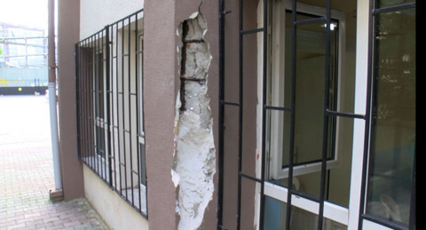 Küçükçekmece'de duvar ve kolonlarında çatlaklar oluşan okul önünde eylem