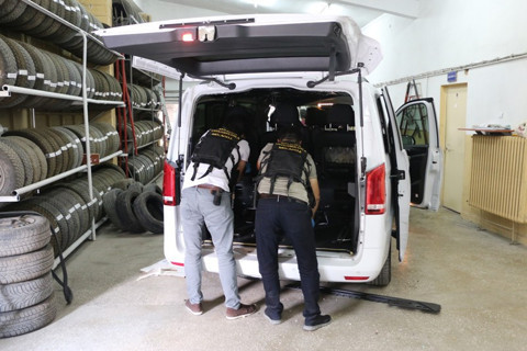 Galerinin tamamı için tıklayınızBurada parçaları sökülen minibüsün tavan kısmı ve koltuk arkalarına zulalanmış 160 paket halinde 80 kilogram eroin bulundu. Eroin paketlerinin, mıknatıslar monte edilerek minibüsün tavanına tutunmasının sağlandığı tespit edildi.