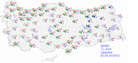 Galerinin tamamı için tıklayınızGenellikle yağmur ve sağanak, Doğu Karadeniz'in iç kesimleri ve Doğu Anadolu ile Sivas çevrelerinde karla karışık yağmur ve kar şeklinde görülmesi beklenen yağışların, bu sabah saatlerinde Rize çevreleri ile Artvin kıyılarında kuvvetli olması bekleniyor. Sabah ve gece saatlerinde Marmara ile iç ve doğu kesimlerde pus ve yer yer sis bekleniyor.