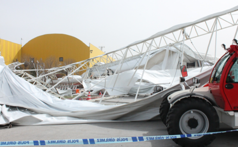 Galerinin tamamı için tıklayınızÇökme sonucu çadırdaki stantlarda bulunan çoğu görevli 10 kişi