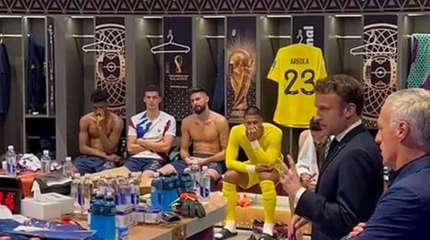 Galerinin tamamı için tıklayınızMedya Macron'un kendini gösterme çabalarına soyunma odasında da devam ettiğini ancak oyunculardan hiçbirinin sözlerinden etkilenmediğini ve onu zayıf bir alkışla uğurladığını yazdı.