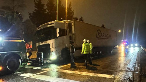 Makaslayan tır nedeniyle D-100 kara yolu Edirne yönü trafiğe kapatıldı