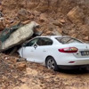 Otomobilin sahibi Mehmet Demircioğlu, "Gece yağmur sesiyle uyandım. Arabanın bu şekilde enkaz altında kaldığını gördüm." dedi.