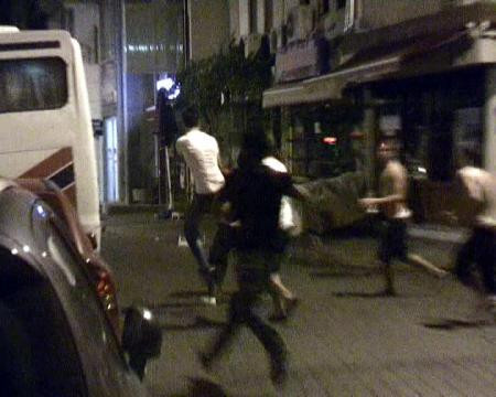 Galerinin tamamı için tıklayınızOlay, Marmaris İlçesi Tepe Mahallesi 33 Sokak’ta pazar günü saat 02.30 sıralarında meydana geldi. İngiltere’den tatil yapmak üzere Marmaris’e gelen üniversiteli 8 İngiliz, Barlar Sokağı’ndaki bir diskoya gidip eğlenmeye başladı. Gecenin ilerleyen saatlerinde aynı mekana gelen 3 Türk müşteri ile İngiliz turistler arasında başlayan yer tartışması arbedeye döndü.