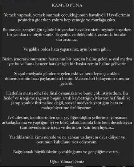 Galerinin tamamı için tıklayınızSosyal medyadan da açıklama yapan Uğur Deniz Yılmaz, kendisine gelen eleştiri oklarını üzerinden attı. Bu kez Acun Ilıcalı ve MasterChef Türkiye şefleri tepki çekti.