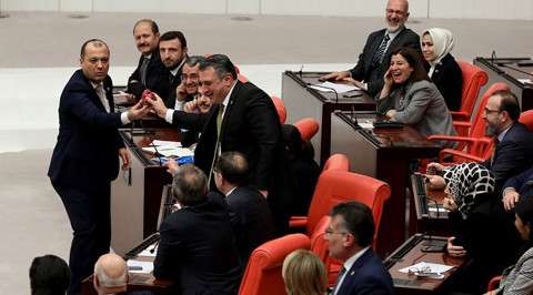 Adalet Bakanlığı, Çevre ve Şehircilik Bakanlığı ile Tarım ve Orman Bakanlığı bütçelerinin görüşüldüğü Meclis Genel Kurulu'nda "Ejder Meyvesi" gündem oldu. Bütçe görüşmeleri sırasında gece geç saatlerde CHP adına son konuşmacı olarak kürsüye çıkan CHP Tekirdağ Milletvekili İlhami Özcan Aygun, Meclis kürsüsüne, ejder meyvesi, bir kilogram buğday, kehve fincanı ve fotoğraflarla çıktı. Aygün, kürsüye geldiğinde konuşmasına başlamadan önce ejder meyvesini eline alarak AK Parti sıralarına yöneldi ve Ejder meyvesini AK Partili vekillere gösterdi. Aygun, konuşması sırasında önce tren kazaları ve Ergene nehri ile ilgili fotoğrafları gösteren ardından bir fincan kahve için 5 kilogram buğday gerektiğini belirterek fincan ve bir kiloluk buğday gösterdi. Ancak Tekirdağ Milletvekili, konuşması üç kez uzatılmasına rağmen süresi içerisinde kürsüye koyduğu ejder meyvesini gösteremeyince iktidar ve muhalefet milletvekillerinin kahkahalarına sebep oldu. TEK TEK İNCELEDİLER: CHP’li Aygun, konuşması bitince AK Parti sıralarına giderek ejder meyvesini gösterdi. AK Parti Amasya Miletvekili Hasan Çilez, Aygun’den aldığı meyveyi inceledikten sonra CHP İstanbul Milletvekili Mahmut Tanal’a verdi. Tanal, ise meyveyi AK Parti grubuna geri verdi. AK Partili vekiller ise tek tek meyveyi inceledi. Bu olayın ardından söz alan İYİ Parti Mersin Milletvekili Zeki Hakan Sıdalı ise ejder meyvesinin bu şekilde gündeme gelmesine tepki gösterdi. Sıdalı, meyvenin Mersinli üretici için önemini anlattı. İŞTE O KARELER....