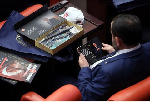 Galerinin tamamı için tıklayınızÖzel kutular içinde dağıtılan albümler vekillerin oldukça ilgisini çekti. TBMM Genel Kurulu'nda konuşmalar devam ederken bazı milletvekillerinin albümleri incelediği görüldü.
